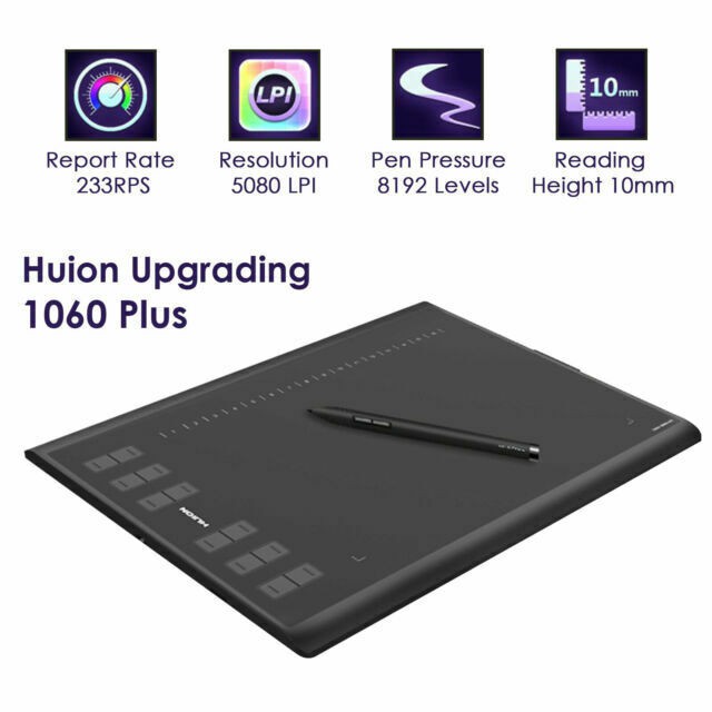 Huion New 1060 Plus Graphic Drawing Tablet With 8192 Pen Pressure 12 Express Keys And Built-in 8gb Microsd Card Huion Drawing Tablet Tablet Graphics Tablet
